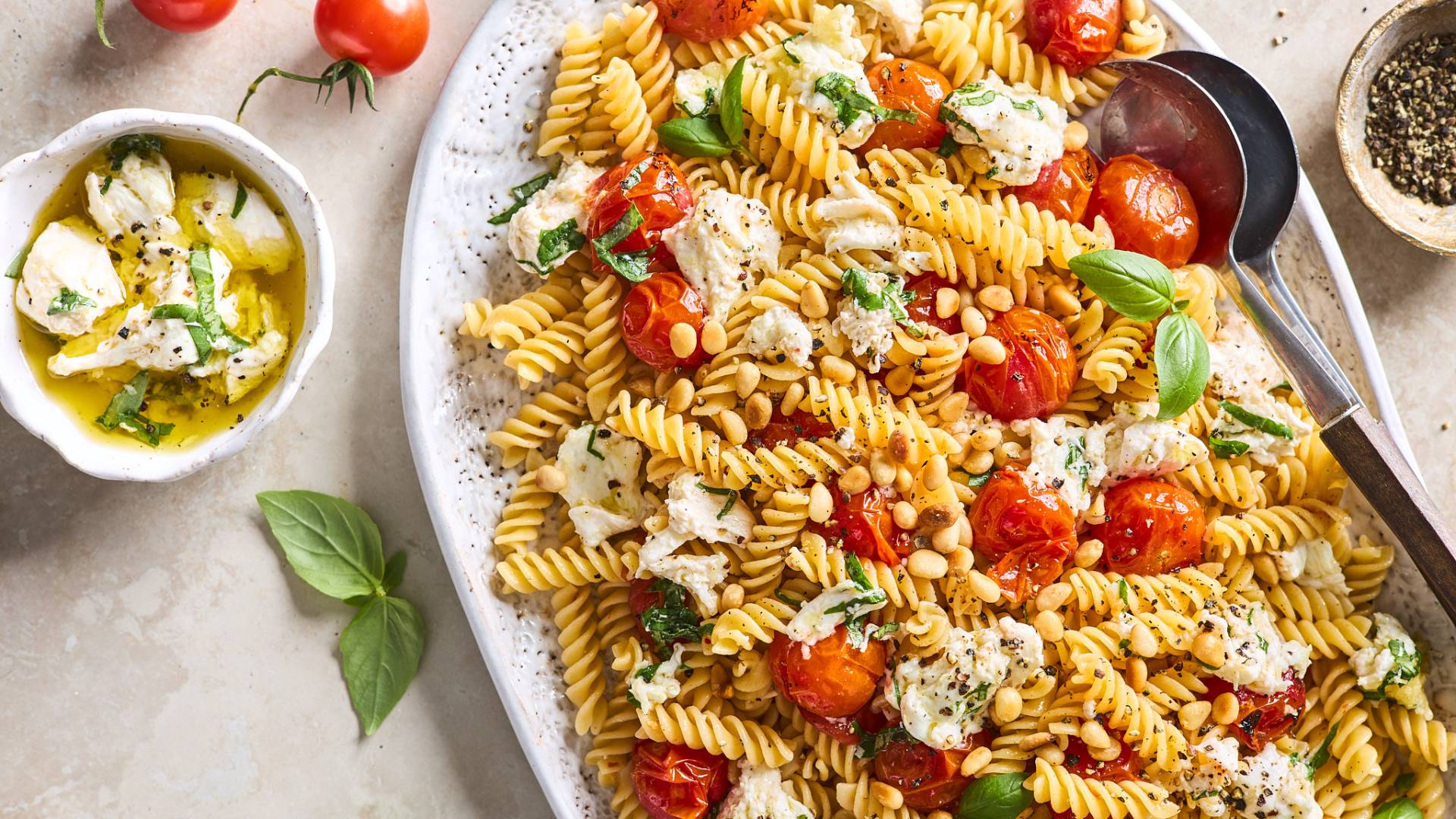 4. Toss with marinated mozzarella, butter, and Parmesan.