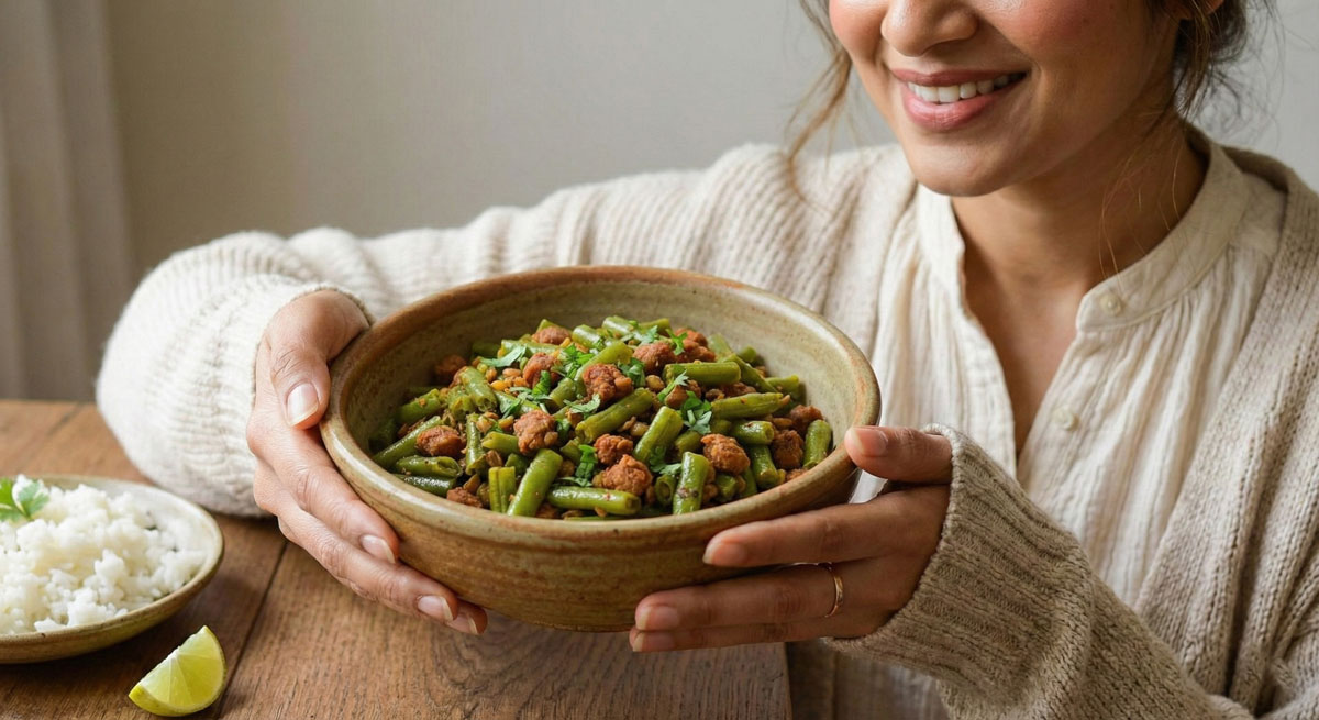 Green Beans with Crunchy Fried Mung Badis BARBATTI BADI SABJI